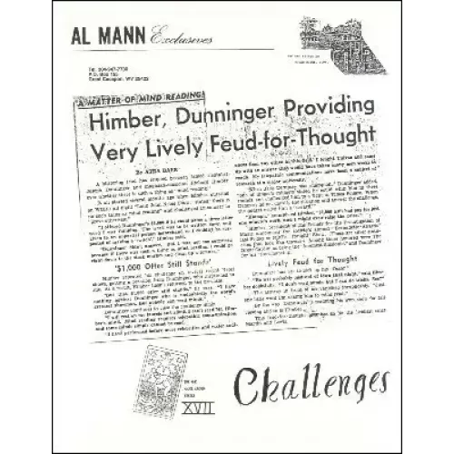 From the forward by Al Mann: “The true art of mentalism is not the illusion of the stage that enchants the eye but the illusion created in the mind that enchants the thought. The mentalist’s greatest gimmick is hidden in the inner recesses of his mind and therefore invisible and unexposable. This manuscript expounds the illusive, seldom exploited and little known branch of magic where the spectator unknowingly executes the ‘move’ that creates the miracle to the full credit of the magician! The “Headline Prediction” is indeed a headline getter for the magician and mentalist. It is a haunting experience for the beholders. The magician pierces the time barrier by predicting the future in writing in a sealed letter that is never again touched by the magician or any one in his company after the letter is mailed or delivered! … This is the highest form of magic!”