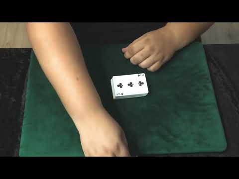 The magician takes a deck and dribbles it on the table. While doing so, he catches the chosen card in between other two cards.
