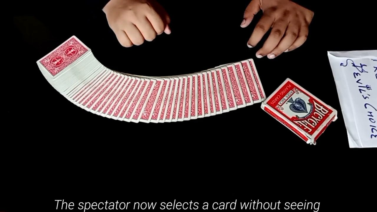 The Devil’s Choice is as an effect where the spectator selects a card from a fairly shuffled pack of cards. It is a genuine fair selection, and that card somehow matches exactly to the prediction, the magician had introduced in the beginning of the trick.