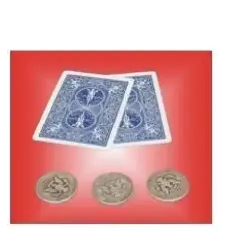 Make three coins travel mysteriously one at a time underneath two playing cards. Each translocation becomes more impossible as you slowly show your hands empty before and after the coin travels. You really must see this to believe it!