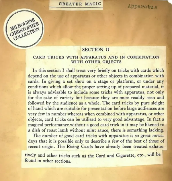 Jean Hugard – Personal Files – Apparatus
