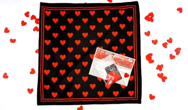 The magician takes a handful of heart shaped confetti and throwsthese over the bandana. Alternatively the bandana can be swept in the fallenconfetti hearts.