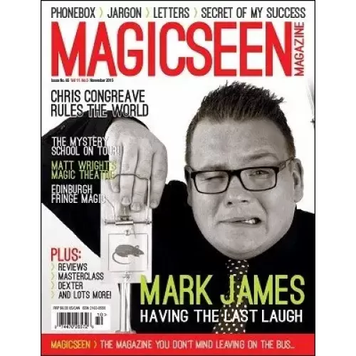 Editor’s LetterWhat’s Inside – contentsColin McLeod: Standing Room Only! – cover article/interview by Graham HeyLettersLive Review – Jamie Raven – by Phil ShawNeil Henry: Mindwangler! – InterviewA British Institution – MagicWeek – Mark LeveridgeAvoiding the Refusal – Mark LeveridgeCaroline Ravn: The Swedish Sensation – Interview by Graham HeyKen Dyne: Is All Business – Mark LeveridgePeter Pellikaan: The Man Behind the Voice – InterviewInternational Masterclass [England]True Love – Luke JonasBy George – Scott OlgardIn The NewsThe Grumpy Old Magician Goes to a Convention – Mark LeveridgeShout Outs – Special ‘extra’ announcements from a few regular advertisersProduct ReviewsFlavoure – Julio Montoro – effect with gimmickClign – Anthony Stan – effect with gimmicks and online instructionsCoin – Eric Chen – DVDJumping Gem Pen – Jeff Prace – effect with gimmicks and online instructionsLegacy – Finn Jon – 4-DVD setEgyptian Ink – Abdullah Mahmoud – DVD with gimmicksMove Zero, Volume 1 – John Bannon – DVDTriad Coins – Joshua Jay – gimmicks with online instructionsMy Silly Tricks – Hector Mancha – DVDUno – The Other Brothers – instant downloadArcanium – Enrico and Valerio Messa – instant downloadShuffled – Jos Denys – DVDMentalism Masterclass – Peter Turner – 5 instant downloadsTraveler – Jeff Copeland – gimmick with online instructionsNew Dogs, Old Tricks: Finding Inspiration in Magic’s Past – Eoin SmithKhor Kat: The Future’s Bright – InterviewNext IssueListingsBack Issues