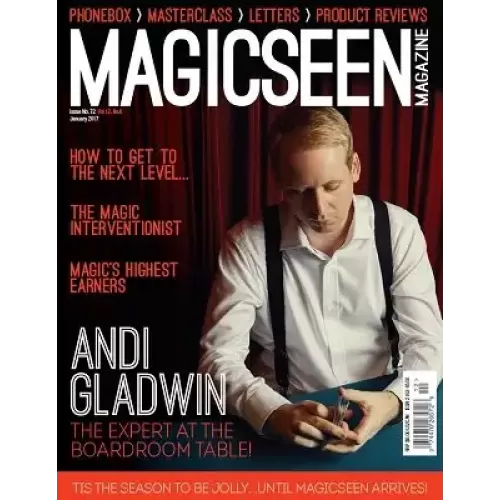 Cover: Young & StrangeEditor’s LetterYoung & Strange – Can We Talk About the Boat Now? – cover article/interview – Graham HeyLetters – Have Your SayMasterclass – From Screen to PageThe Hof – Liam MontierAerial Splinter – Michael KaminskasTim Ellis – The Master of the Milkshake! – interview – Graham HeyAsk Christopher [T. Magician] – Part 2 – Mark Leveridge, compilerComedy and Authenticity – Mel MellersA Tribute to Eugene Burger – Jay Fortune, compilerThe Curious Incident of the Curb Stone at the Convention – Jay FortuneDavid Berglas and Eugene Burger – Jay FortuneInspiration & Kindness – Jeff McBrideRemembered – Lawrence HassShout Outs – Special ‘extra’ announcements from a few regular advertisersProduct ReviewsPhantom Burn – Alan Rorrison – effect with DVDNitrate – Cameron Francis – effectConjuror at the Table – Al James – bookError 404 – Les French Twins – effect with video instructionsHow to do Coin Magic – Zee and Sansminds – DVDiCharge 2.0 – Silver Wing – effect with video instructionsAt the Table Lecture – Marc Spelman – viseo downloadThe Marksman Deck – Luke Jermay – marked deckWithdrawal – Jeff Prace & Josh Janousky – DIY effect with video instructionsUnlock – Morgan Strebler and Sansminds – effect with DVDTriple C – Christian Engblom – gaffed deck effectOne Liner HeavenOne Liner HeavenEliminating Piracy – George LuckIn The Phonebox with Colin Hay3 Exciting New Ways to get Gigs – Geraint ClarkeNext IssueListingsBack Issues
