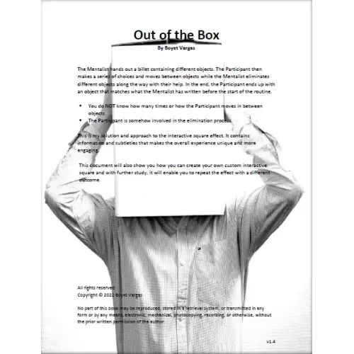 The Mentalist hands out a billet containing different objects. The Participant then makes a series of choices and moves between objects while the Mentalist eliminates different objects along the way with their help. In the end, the Participant ends up with an object that matches what the Mentalist has written before the start of the routine.