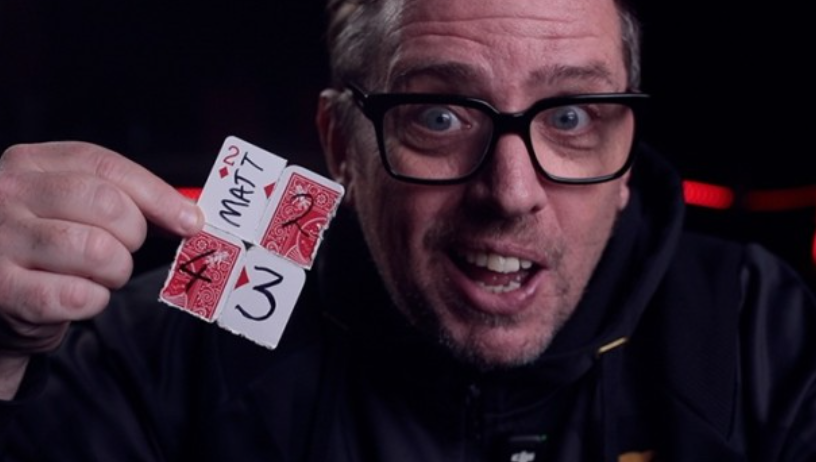 Without any complicated sleights , difficult palms or any other sneaky business outside of a basic magicians skill level the card instantly and visually joins back together in the most unexpected and impossible way. The card is a mismatched design front and back. The torn edges can been seen on the outside edges of the card. And all four signatures are STILL ON the card.
