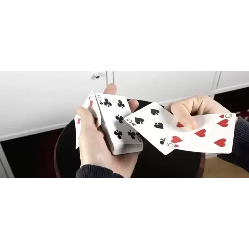 She can shuffle before and after, and as much as she wants. You never touch or see the chosen card. You can be blindfolded or in another room. When you back you will find her card in less than a second, even with your eyes closed all the time!