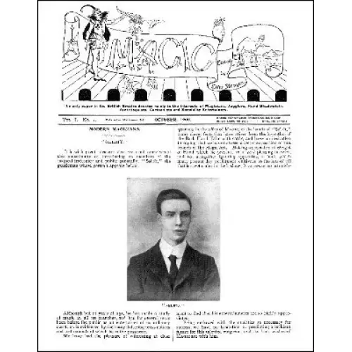 Magic – Volume IV, Number 1 – October 1903 – 16 pagesModern Magicians – biography/review – W. D. Le Roy (Boston)Facsimile from Mr. Stanyon’s PortfolioMagic – announcements and offersEditorialOriginal Lessons in Magic – Ellis StanyonIllusionMetempsychosis Double-ExtraordinaryThe Wonderful Floating Card, in Combination with an Anti-Spiritualistic TrickSoap Bubble TricksPaper Tearing – Ellis Stanyon (continued)The Great Triple Tearing FeatTorn Design Changed to ConfettiThimble Rigging – by One of the Old SchoolA Bibliography of Conjuring – Compiled with Notes – Ellis StanyonBits From Birmingham – Duleep SinghAmerican Notes – Henry Ridgley EvansExplanatory ProgrammesSylvo, Tramp JugglerItems of InterestHelpful HintsAdvertisements & Personal CardsMagic – Volume IV, Number 2 – November 1903 – 12 pagesModern Magicians – biography/review – Hubert PictonFacsimile Selected from Mr. Margery’s PortfolioMagic – announcements and offersEditorialOriginal Lessons in Magic – Ellis StanyonThe Velvet Coin StandNovel Discovery of a Chosen CardThe Bent Corner DiscoveryOn the Passing of 12 Cards up the Sleeve into PocketMarvellous Spirit PicturesAn InsultPaper Tearing – Ellis Stanyon (continued)Erratic Paper BandsTricks with Eggs – Ellis StanyonChapter I – Equilibrium (continued)Tumbling Egg on WandBalancing Unprepared Egg on PlateThe Waltzing EggEgg to Balance and Travel on Borrowed CaneEgg to Balance and Travel on SwordL’oeuf SubmergeTo Balance and Egg on the Point of a StrawHelpful HintsSouth African Notes – T. HayesItems of InterestAdvertisements & Personal CardsMagic – Volume IV, Number 3 – December 1903 – 16 pagesModern Magicians – biography/review – George H. Helm (Max O’Kill)Facsimile of Mr. M. Jacob’s programme, 1841. Selected from Mr. Margery’s PortfolioMagic – announcements and offersEditorialOriginal Lessons in Magic – Ellis StanyonChosen Card Found Reversed in PackImproved Cut and Restored TapeSleights with Lighted CigarVesuvius In EruptionThe Deceptive PeaThe Match RocketA “Life-Like” PictureSpecial Offer to SubscribersNovel Vice-Versa With Cards – H. D. RobertsNew Color Change – W. E. H. BrowneNew Pea and Thimble Trick – Gerald BoyceExplanatory ProgrammesChung Ling Soo, Hippodrome, Nov. 1903Manchester Notes – Nelson ThorneQueensland Notes – Gerald BoyceSouth African Notes – T. HayesPuzzle of Nine SpotsAdvertisements & Personal CardsHelpful HintsMagic – Volume IV, Number 4 – January 1904 – 8 pagesSpirit Mediums or PsychistsMagic – announcements and offersEditorialOriginal Lessons in Magic – Ellis Stanyon20th Century Handkerchief ProductionThe Great Button Biting TrickRe The Reversed Card – Hugall BenedictSpecial Offer to SubscribersExplanatory ProgrammesCarl Hertz, Empire, Dec., 1903Severus Schaffer (Juggler and Equilibrist), Empire, Dec., 1903copy of the programme of the English HussarHelpful HintsAdvertisements & Personal CardsMagic – Volume IV, Number 5 – February 1904 – 8 pagesBlack Art, or Oriental Magic – Ellis StanyonAdvertisementsMagic – announcements and offersSpecial Offer to SubscribersOriginal Lessons in Magic – Ellis StanyonDe Kolta’s Wonderful Card Rising TrickNovel Reading of CardsExplanatory ProgrammesCarl Hertz, Empire, Dec., 1903 – continuesSeverus Schaffer (Juggler and Equilibrist), Empire, Dec., 1903 – continuedSouth African Notes – T. HayesManchester Notes – Nelson ThorneHelpful HintsAdvertisements & Personal CardsMagic – Volume IV, Number 6 – March 1904 – 8 pagesBlack Art, or Oriental Magic – Ellis Stanyon – continuedAdvertisementsMagic – announcements and offersEditorialOriginal Lessons in Magic – Ellis StanyonEffective Sleight of Hand with Balls and SIMILAR OBJECTS. Up-to-dateBlood Writing, etc.Explanatory ProgrammesConjuring Programme, Egyptian Hall, February, 1904Advertisements & Personal CardsMagic – Volume IV, Number 7 – April 1904 – 8 pagesBlack Art, or Oriental Magic – Ellis Stanyon – continuedAdvertisementsMagic – announcements and offersEditorialSpecial Offer to SubscribersOriginal Lessons in Magic – Ellis StanyonStanyon’s New Handkerchief CombinationArtistic and Subtle Discovery of a Chosen CardTo take off a Man’s Shirt without Removing his CoatDeath of Herr Dobler – Prof. HerwinnExplanatory ProgrammesHarry Kellar in Chicago, September, 1895 – J. H. BurlingameHoudini’s Postman RivalGreat Handcuff TricksAdvertisements & Personal CardsMagic – Volume IV, Number 8 – May 1904 – 8 pagesModern Magicians – biography/review – Professor OsbourneAdvertisementsMagic – announcements and offersOriginal Lessons in Magic – Ellis StanyonThe New Coin WandNew Methods of Vanishing a Glass of Waterletter – Charles J. BagleyBirmingham Notes – Fred WalkerManchester Notes – Nelson ThorneNew Zealand Notes – Robert KudarzChemical Magic for the Drawing Room – Ellis StanyonThe Four ElementsChemistry of a CandleTo make Coal GasThe Floating Beacon and Chemical BoatSalamandrine DessertExploding Soap BubblesPharaoh’s SerpentsAdvertisements & Personal CardsMagic – Volume IV, Number 9 – June 1904 – 8 pagesModern Magicians – biography/review – Owen Clarkprogramme of M. HerrmannEditorialSpecial Offer to SubscribersOriginal Lessons in Magic – Ellis StanyonThe Palm ShowStanyon’s Potassium Fire-Bowl and New Methods of ProductionExplanatory ProgrammesChevalier Thorn, Empire, April, 1904Some Novel Tricks – F. H. KirkTorn and Restored Postal OrderThe Old Fashioned Rising CardsA variation on the Twentieth Century Rising CardsThe New Rising CardsFire and Chemical Magic – Ellis Stanyon – continuedFire EatingArtificial LightingFringe on a CandleChemical Firework TopFloating NeedleMagic Floating EggsBurning a Fleet of ShipsTo Fire Paper with the BreathMysterious Production and Transmission of SmokeHelpful HintsTo The Editor – letter – John J. GoodwinAdvertisements & Personal CardsMagic – Volume IV, 