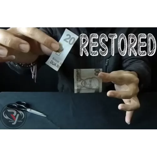 A bill is borrowed from the audience, a corner containing one of the serial numbers on the bill torn off and kept by the spectator, and the bill is signed, but it is teleported by a strange device into a lemon and then into a raw egg.