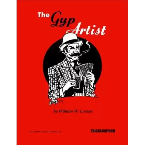 First published in the late 1940s, “The Gyp Artist” is William Larsen’s entertaining lecture that magicians can give on various con games or swindles and their methods. It is a topic that audiences always find of interest and so it’s an easy “sell” for local club, civic group, and other bookings. Larsen provides a solid framework you can use to build your own presentation – from introductory lecture and patter suggestions to tricks and handling. All are standard tricks or props, or instructions are provided on how to make up easily. Use as a complete lecture or simply add one or two of these “gyps” to your current act. Quality new Trickshop.com edition, 16 pages, re-typeset.