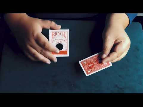 The magician puts a black sticker on the card box.