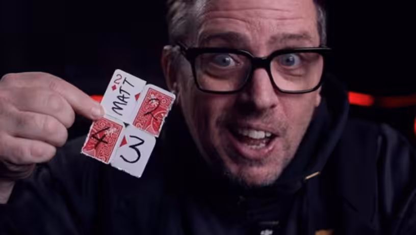 Have you ever had something go missing in the mail? Haven’t we all! In this routine, Tom makes a signed postcard vanish from a “mailbox” and then reappear in an impossible location. This is a fooler, and is very practical indeed. Plus, there’s plenty of funny moments along the way.